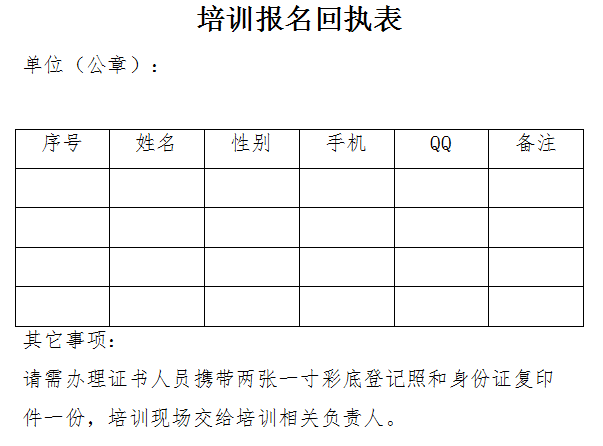 報名方式:請詳細填寫《培訓報名回執表》,發至郵箱917455638@qq.com