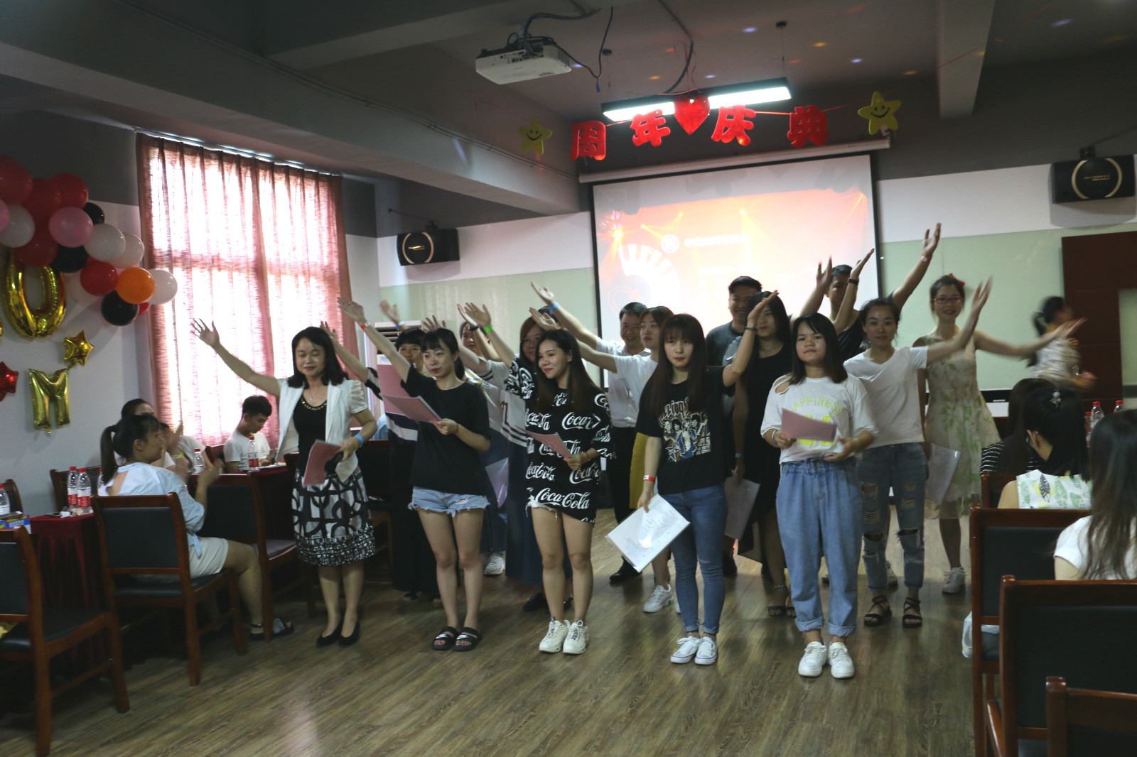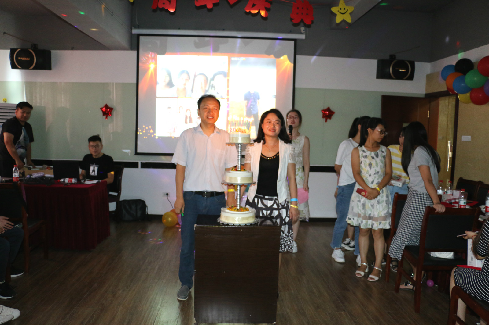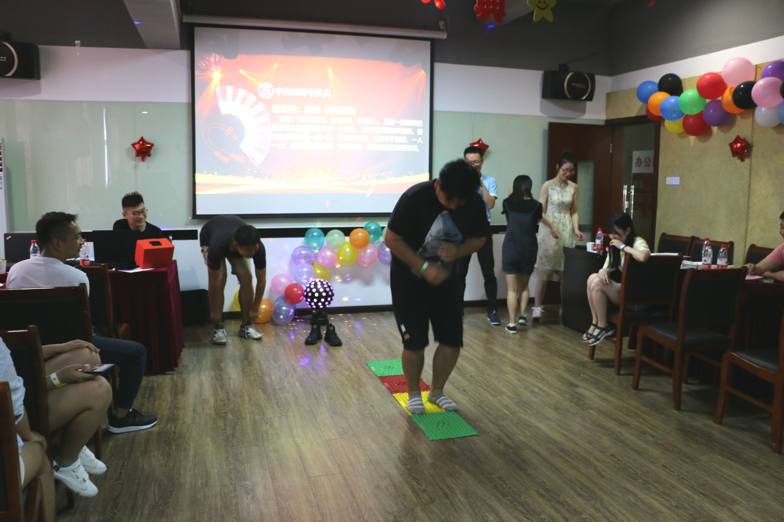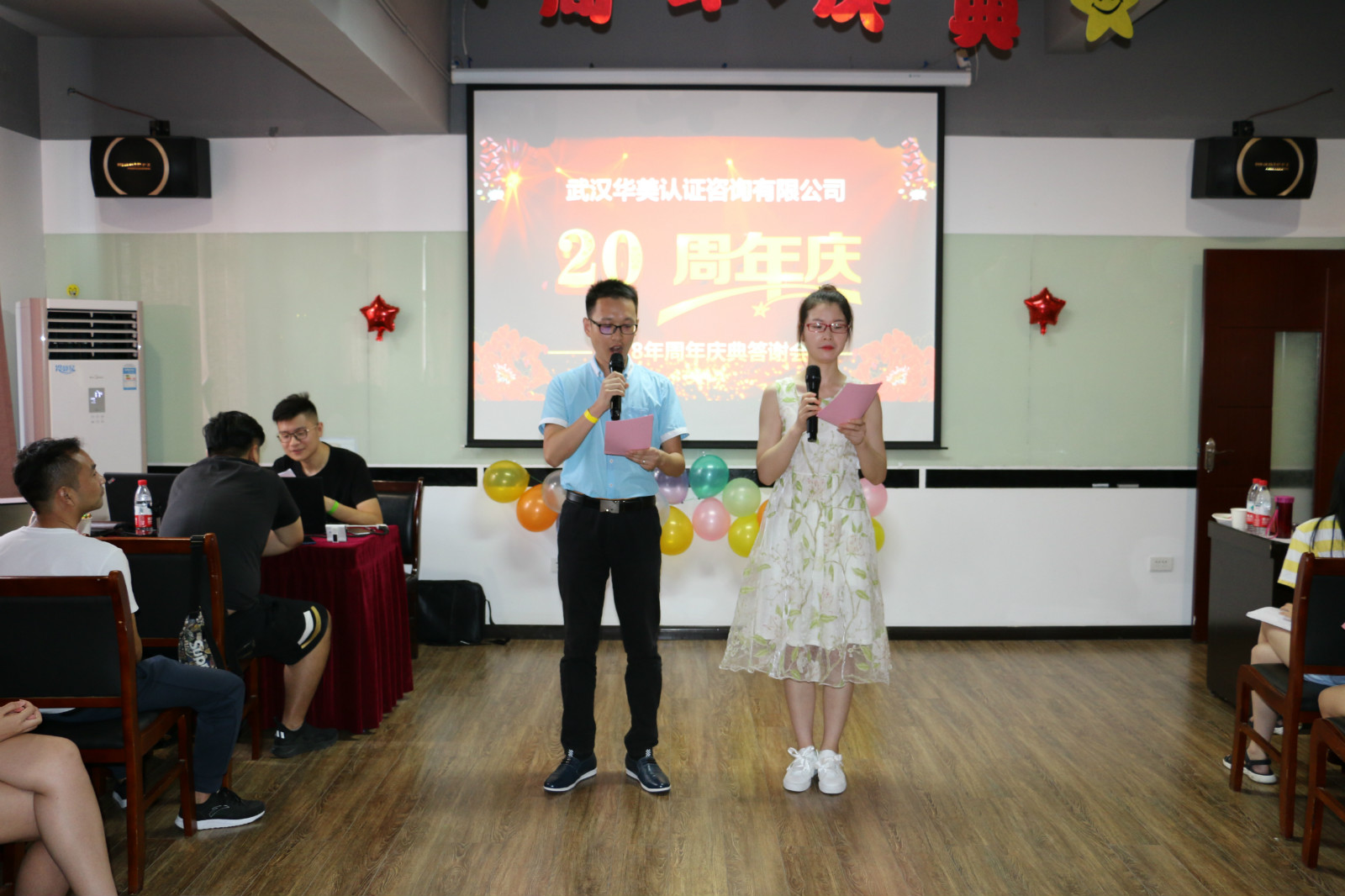 這一天,在武漢華美認證咨詢有限公司的培訓教室舉辦了一場盛大的周年慶聯歡會。除了華美的全體員工,還有湖北省華龍職業培訓學校、武漢華美今天教育有限公司、武漢市運安通信息科技有限公司等幾家公司的參與。現場氛圍熱情高漲,處處都引來歡聲笑語。