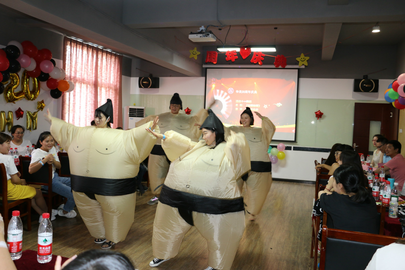 接下來的節目也是一支非常魔性的舞蹈《咖喱咖喱》,由華美綜合部員工演繹,上場也是令臺下觀眾大吃一驚,眼前一亮,身穿相撲服的舞蹈自帶笑點,節目過程也是歡聲笑語。