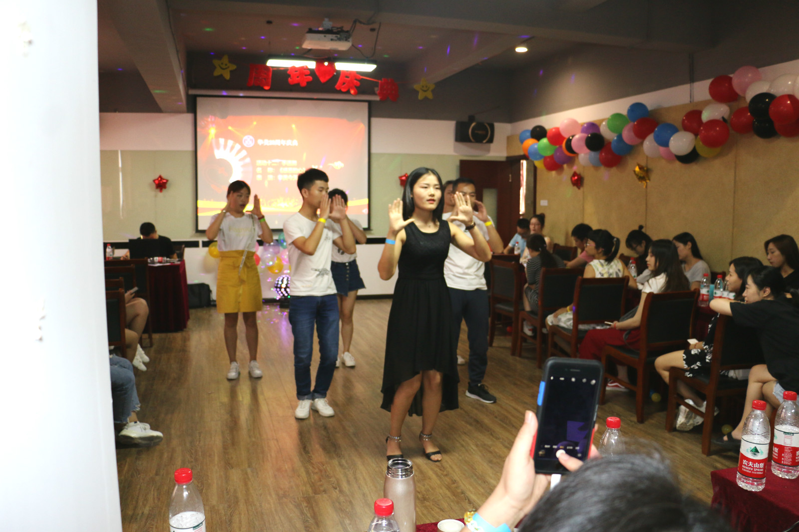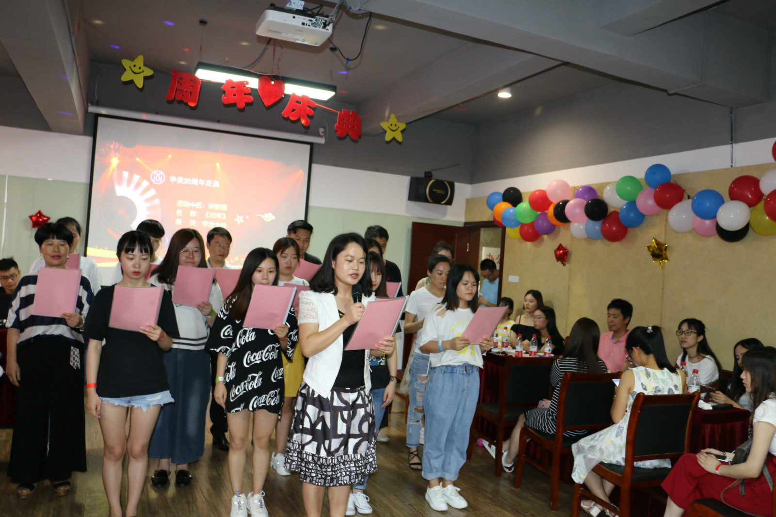 下午2點周年慶正式開始,隨著大家熱烈的掌聲,主持人閃亮登場。在欣賞了華美宣傳PPT之后,華美創始人何存旭先生發言,熱情洋溢的講述了華美的歷程,這些年的風風雨雨歷歷在目,也為我們勾畫藍圖、指點江山,相信在何總的帶領下,華美會越來越好。接下來就是華龍職校的但校長上臺發言,但校長感嘆時間飛逝,并對華美做出了殷切的祝福和希望。隨著但校長致詞結束,激動人心的節目表演時間正式開始!