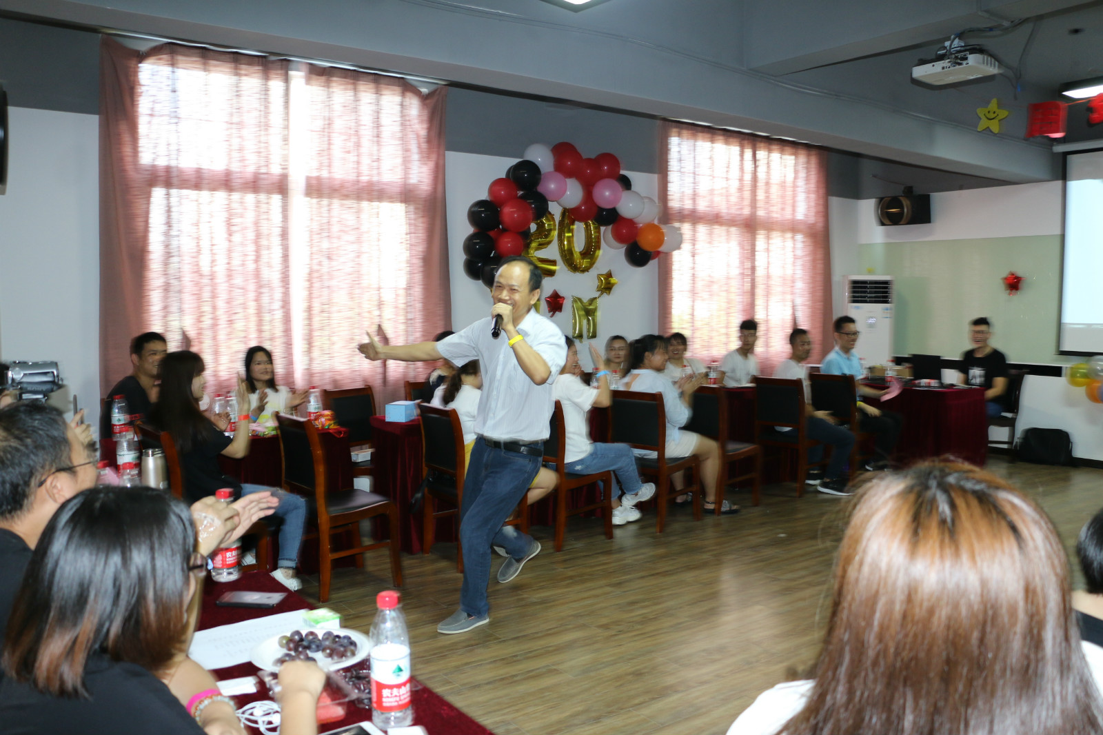 而在紅包抽獎環節之后,就是吃蛋糕環節了,大家欣賞完祝福視頻之后,唱著生日歌,吃著蛋糕,場面一片溫馨。20年的風風雨雨,希望能陪你一起走過。